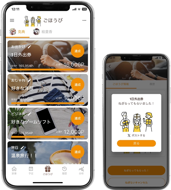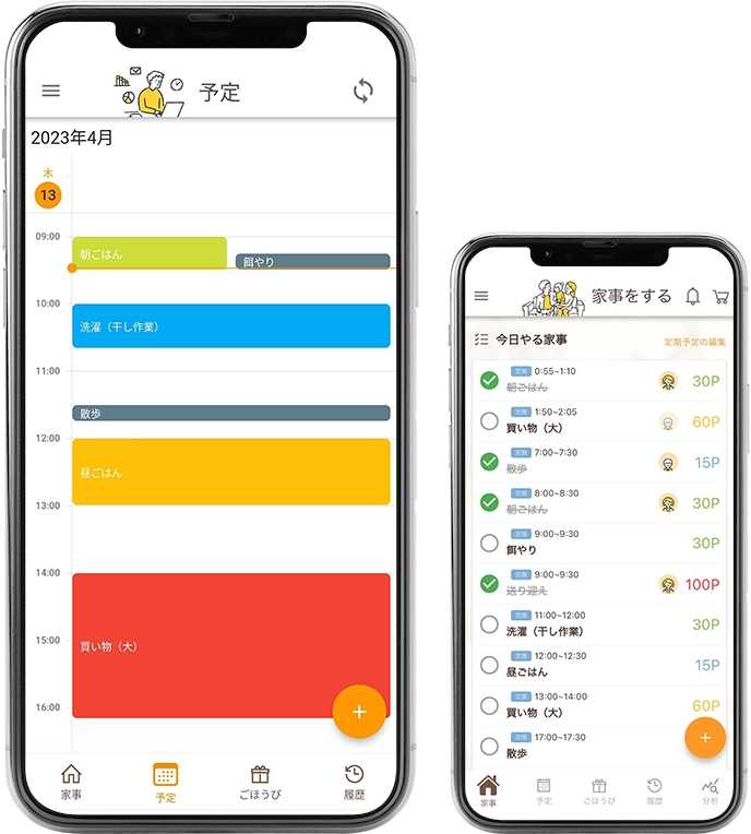 家事や育児をポイント化し、家族で分担・共有できるアプリ。